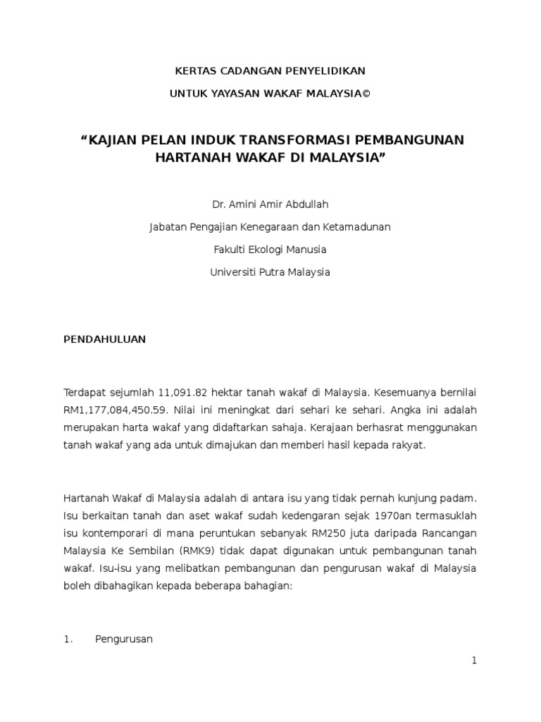 Kajian Pelan Induk Transformasi Pembangunan Hartanah Wakaf Di Malaysia Pdf