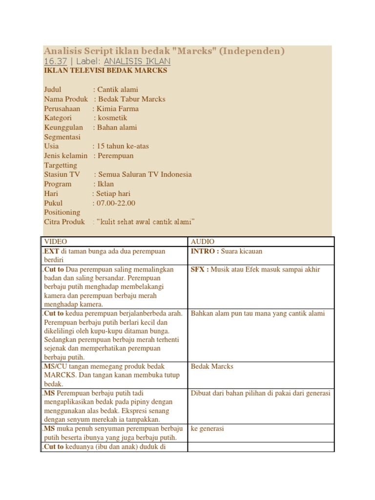 Analisis Script Iklan Bedak Pdf