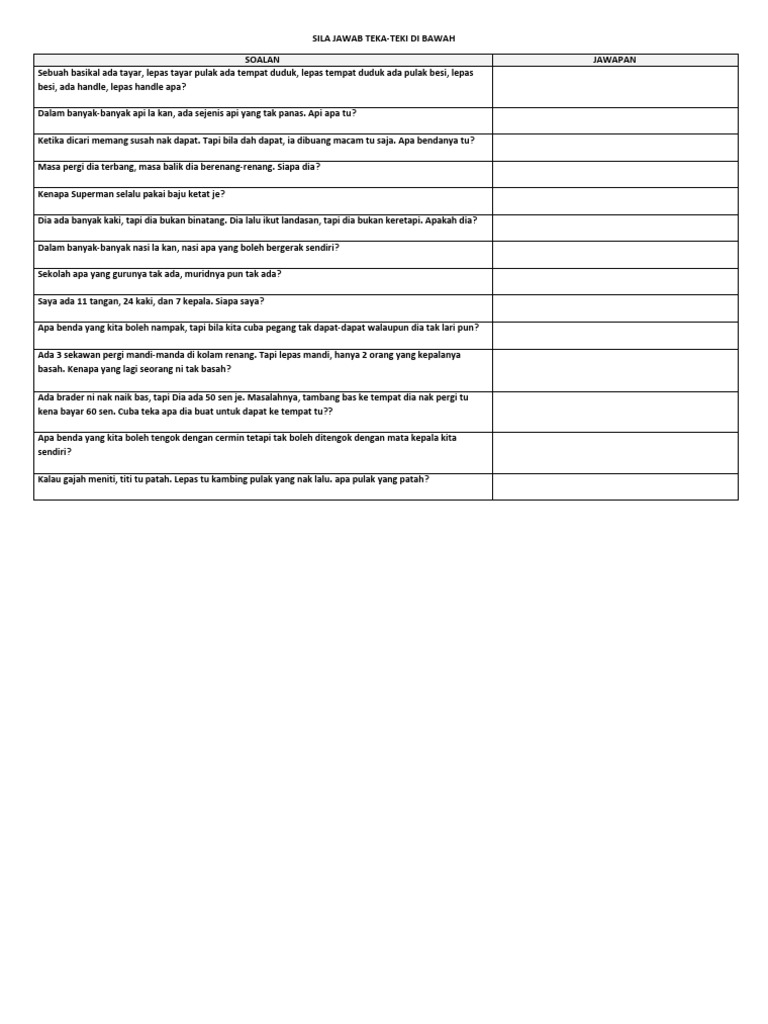 Teka Teki Soalan Pdf